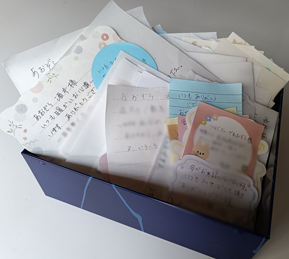 今も温かいメッセージをいただくことも沢山あります(*’▽’)この沢山のお手紙が、あおぞらにとっての大切な宝物です。